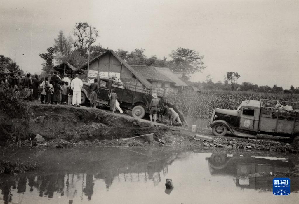1937年,第三批南遷四川的文物在川陜公路運輸的艱苦狀況(資料照片)。