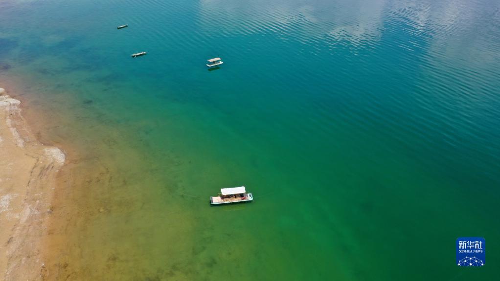 位于甘肅省臨夏回族自治州永靖縣境內劉家峽水庫的黃河三灣碧波蕩漾、岸線(xiàn)蜿蜒,片片小舟在水面搖曳,呈現一幅夏日清新畫(huà)卷。