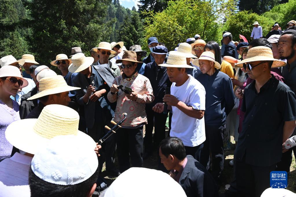 6月13日,在和政縣松鳴巖景區,人們觀(guān)看花兒表演。