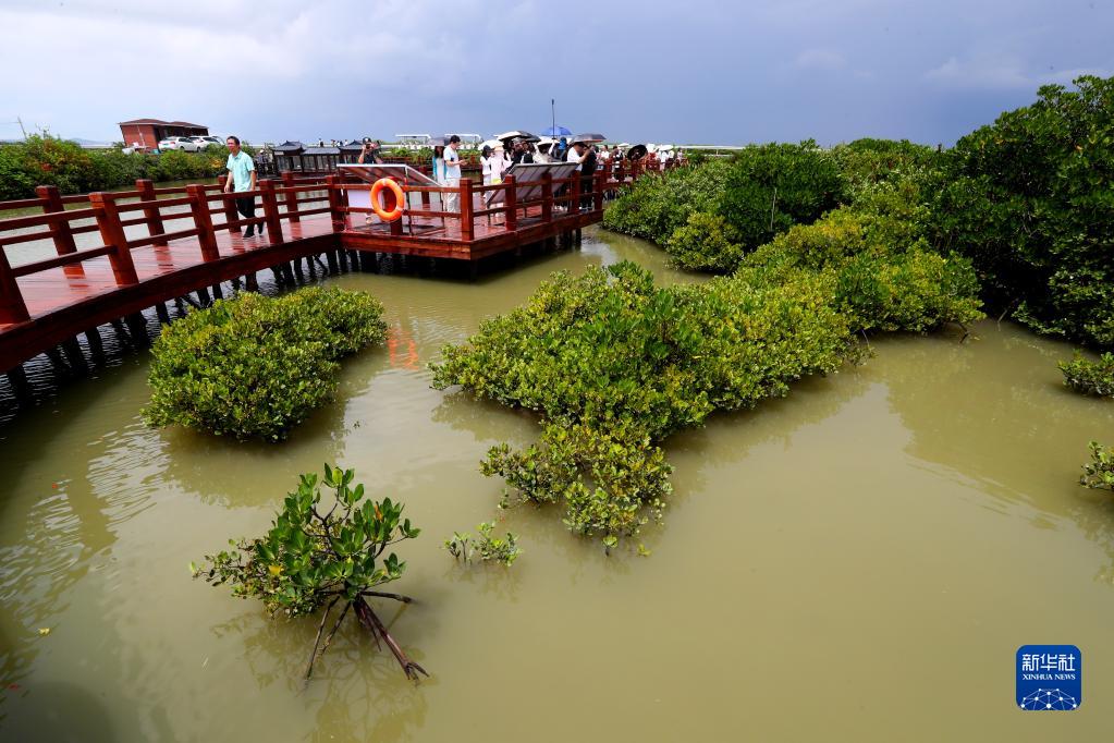 6月13日,人們在廣東省湛江市麻章區金牛島觀(guān)賞紅樹(shù)林。