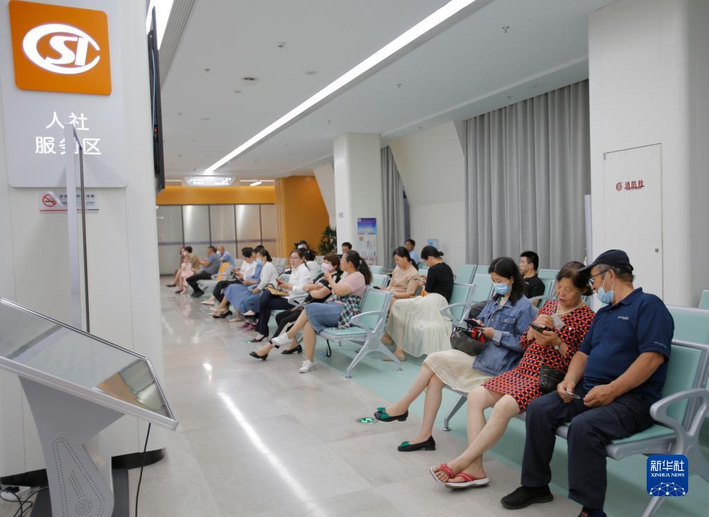 6月13日,在射陽(yáng)縣市民中心,市民在等候辦理業(yè)務(wù)。