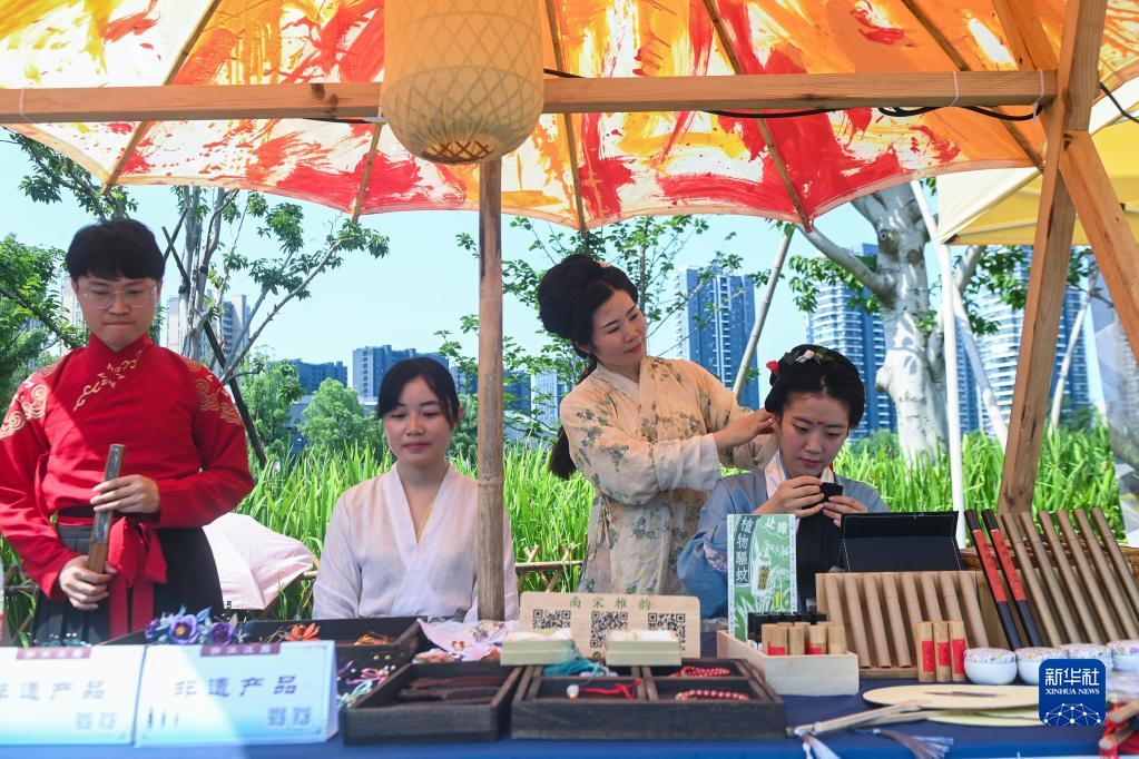 6月9日,2023年“文化和自然遺產(chǎn)日”杭州(拱墅)主場(chǎng)系列活動(dòng)在杭州運河亞運體育公園開(kāi)啟。這是活動(dòng)現場(chǎng)展示的非遺文化及相關(guān)產(chǎn)品。