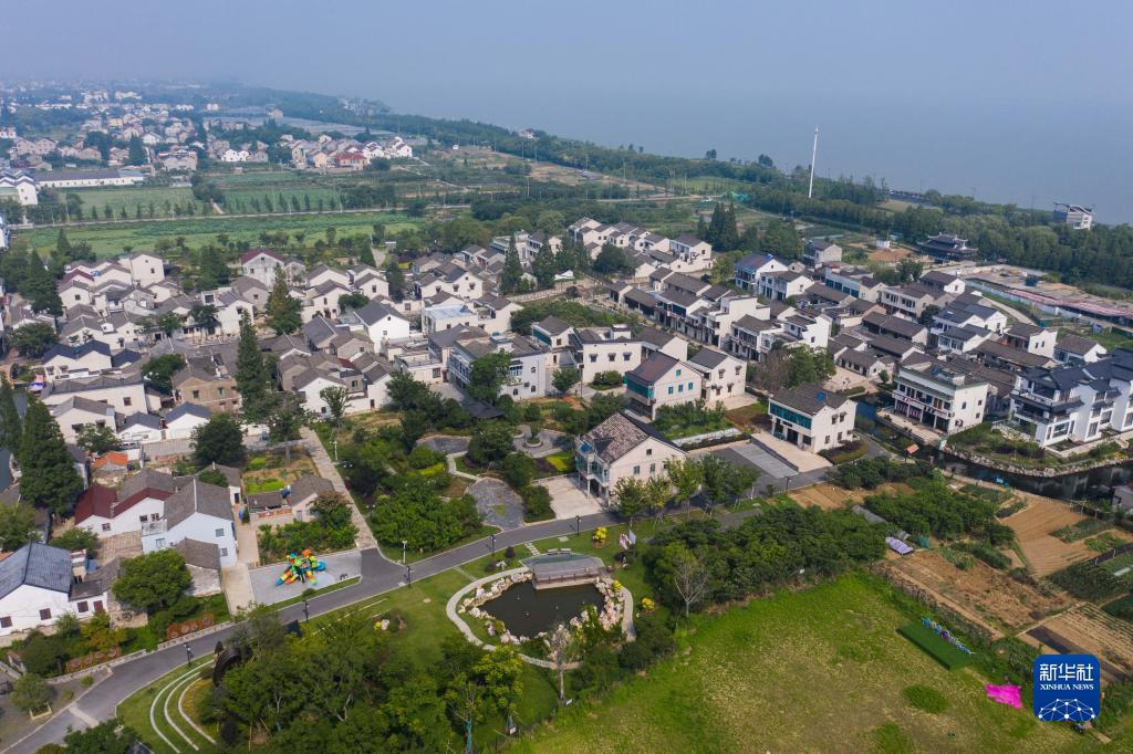 空中俯瞰太湖南岸的織里鎮伍浦村(6月14日攝,無(wú)人機照片)。