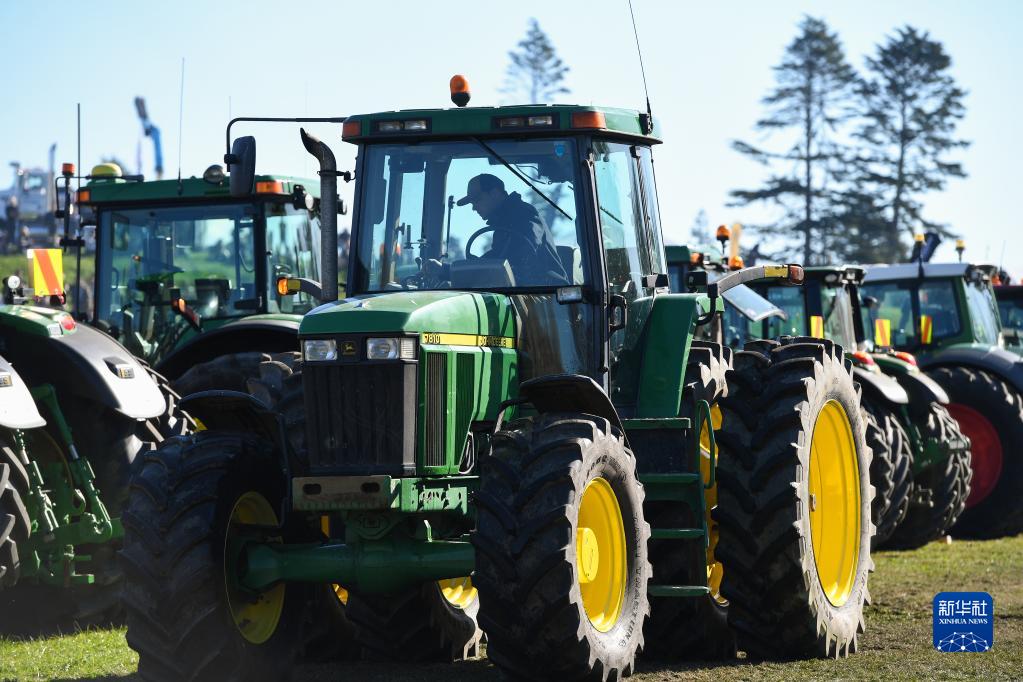 6月14日,在新西蘭漢密爾頓舉行的國際農業(yè)博覽會(huì )上,一名男子駕駛拖拉機。新華社記者 郭磊 攝