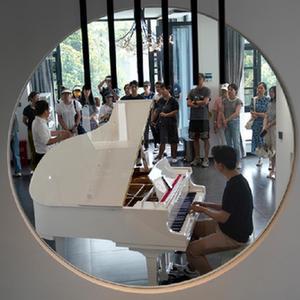 6月15日,在浙江省德清縣莫干山鎮燎原村,民宿主和民宿管家在一家音樂(lè )主題民宿參觀(guān)取經(jīng)。