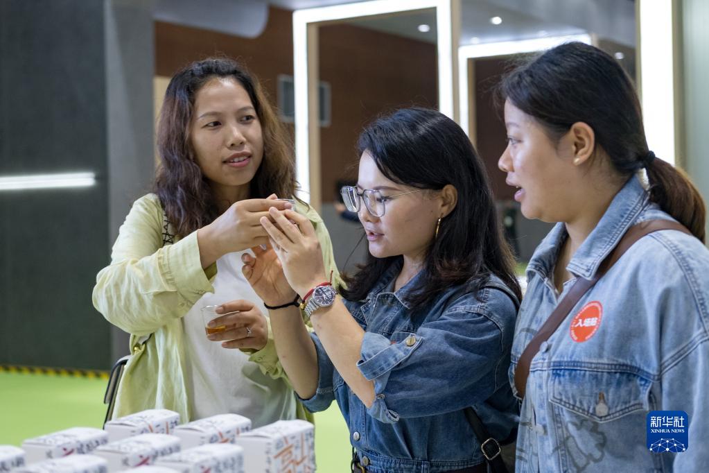 6月16日,在四川省峨眉山市綠茶大會(huì )現場(chǎng),參會(huì )者在選購茶葉產(chǎn)品。