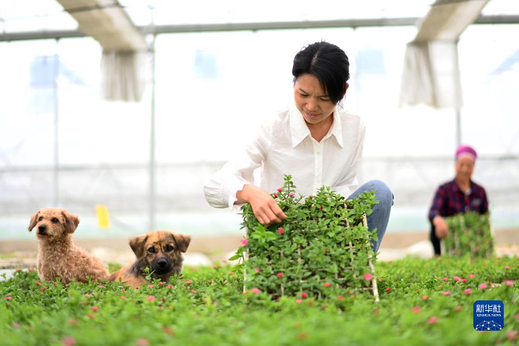 6月16日,村民在貴州省黔東南苗族侗族自治州黃平縣舊州鎮野菜種植基地培育野菜田七葉幼苗。