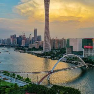 廣州海心橋與周邊景色(無(wú)人機照片,6月10日攝)。