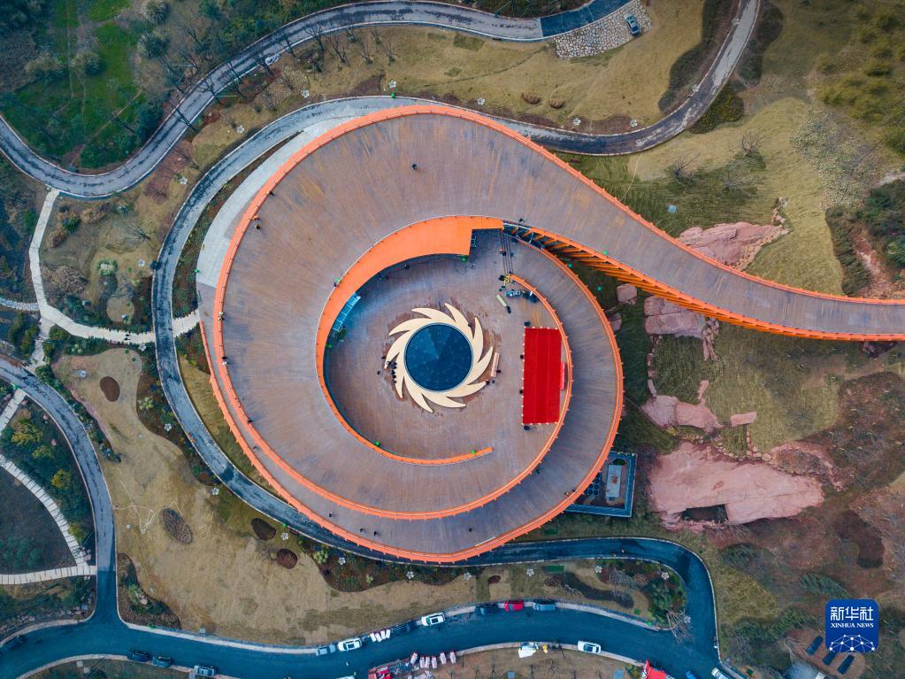 這是在成都龍泉山城市森林公園拍攝的被稱(chēng)為“城市之眼”的丹景臺(2019年12月31日攝,無(wú)人機照片)。