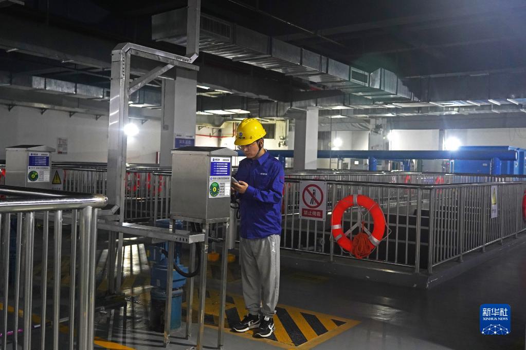 在九江市雙溪公園污水處理廠(chǎng),工程人員監測污水處理情況(6月15日攝)。