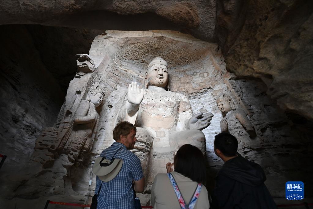 游客在云岡石窟參觀(guān)(2023年6月7日攝)。