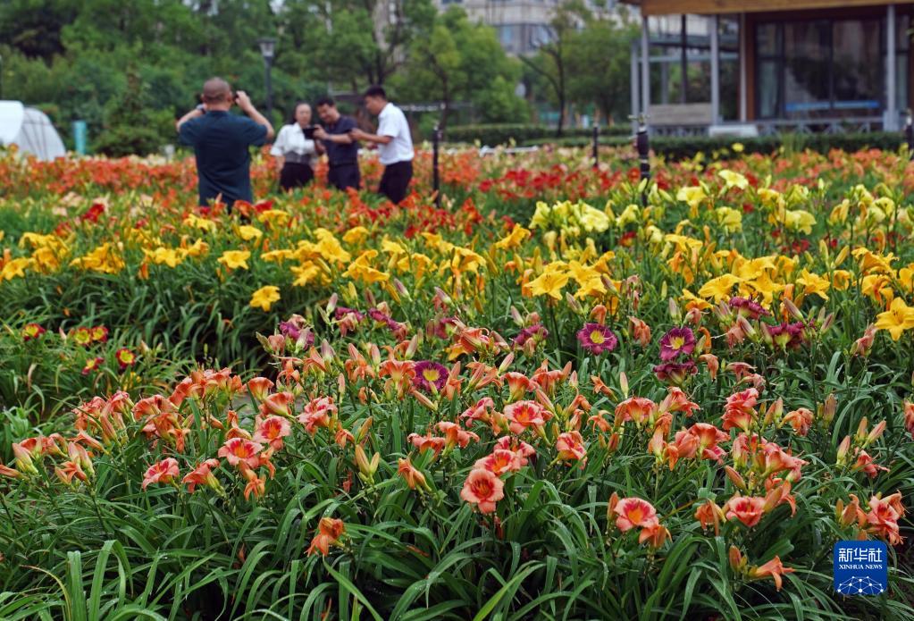 6月18日,人們在上海應用技術(shù)大學(xué)的植物園內參觀(guān)萱草花展。