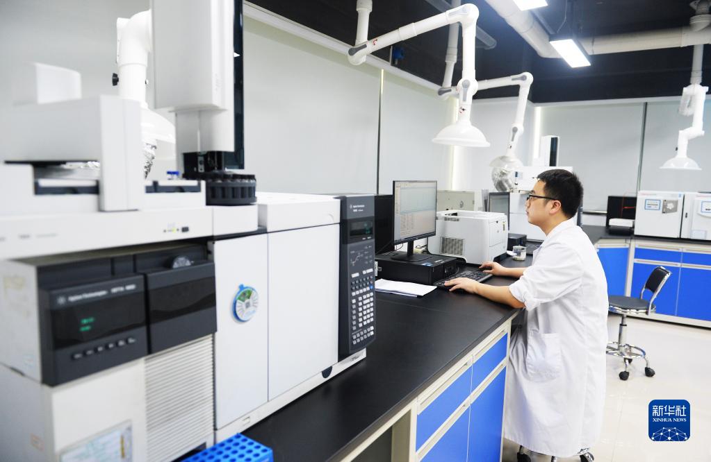 6月18日,中國皮革和制鞋工業(yè)研究院(晉江)有限公司科研人員在實(shí)驗室分析數據。