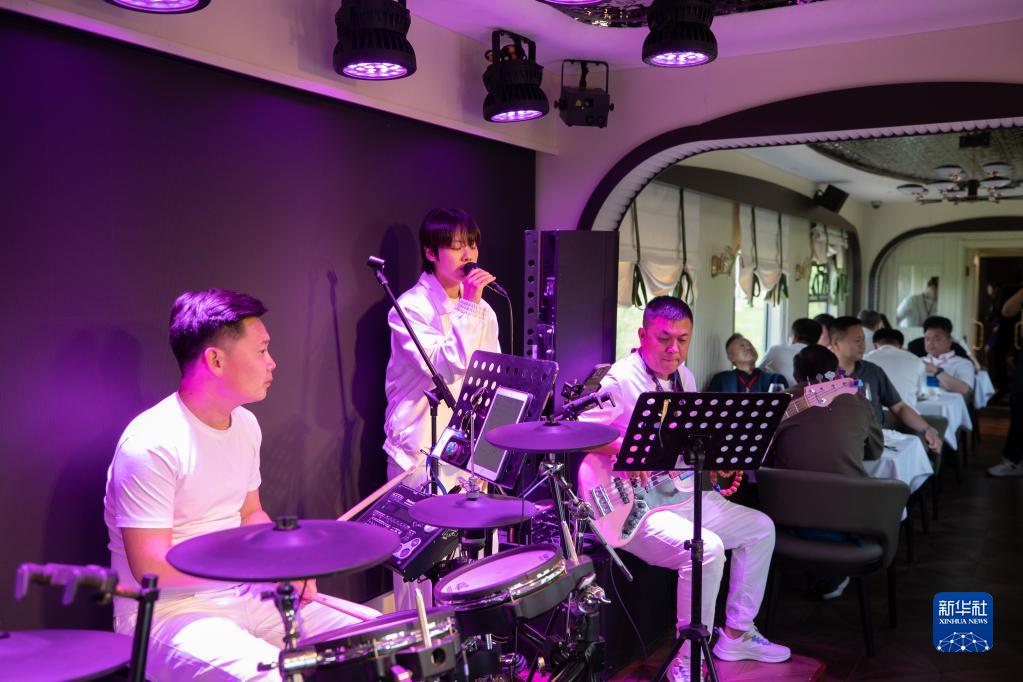 6月18日,樂(lè )隊在“林都號”旅游列車(chē)餐車(chē)車(chē)廂表演。