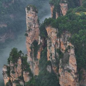 6月18日,云霧在湖南張家界國家森林公園天子山峰林間飄蕩(無(wú)人機照片)。