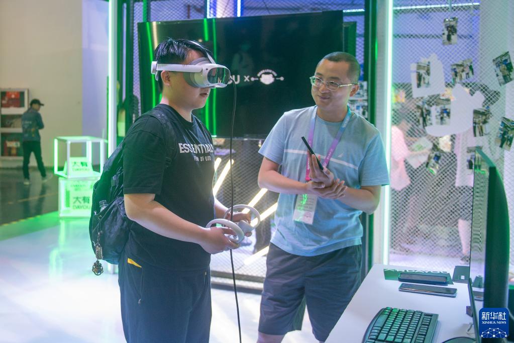 6月20日,觀(guān)眾在第十九屆中國國際動(dòng)漫節產(chǎn)業(yè)博覽會(huì )上體驗虛擬現實(shí)產(chǎn)品。