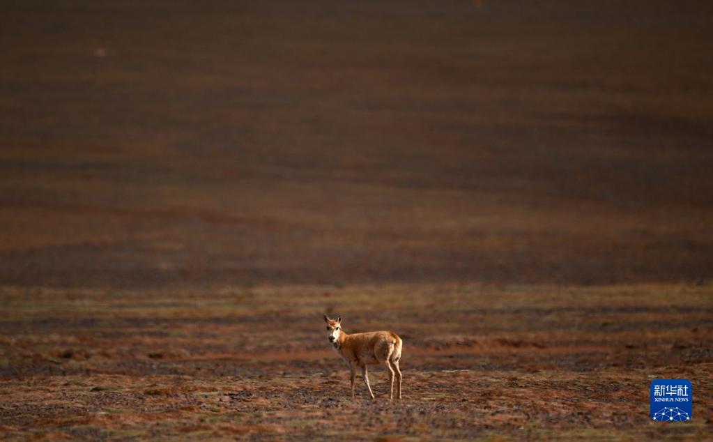 一只藏羚羊在可可西里卓乃湖區域活動(dòng)(6月17日攝)。