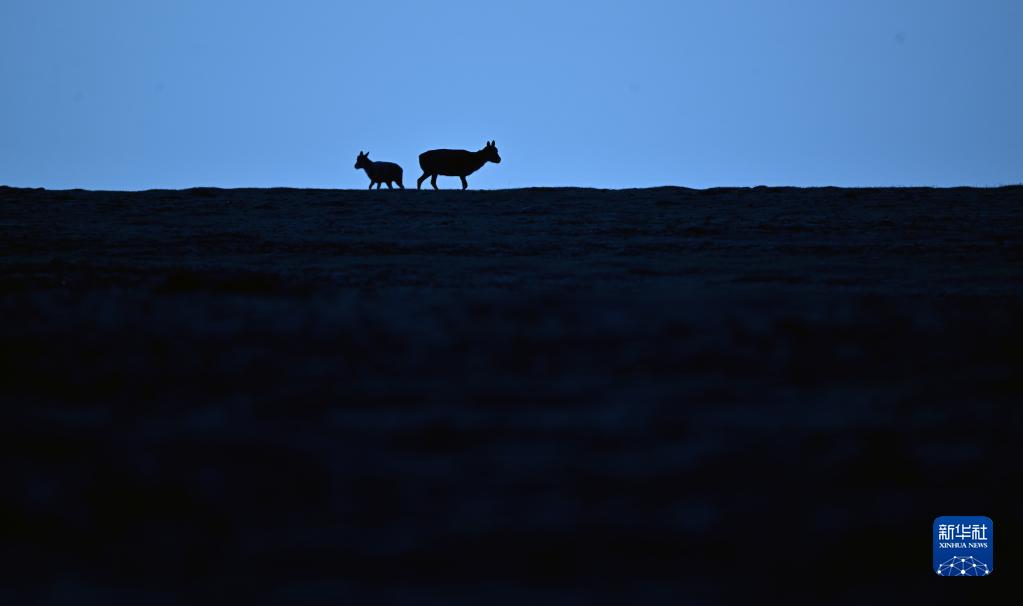 兩只藏羚羊在可可西里卓乃湖區域活動(dòng)(6月18日攝)。