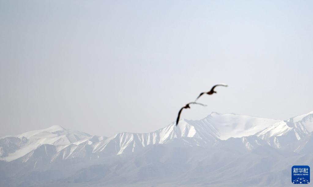 從鹽池灣濕地遠眺雪山(6月20日攝)。