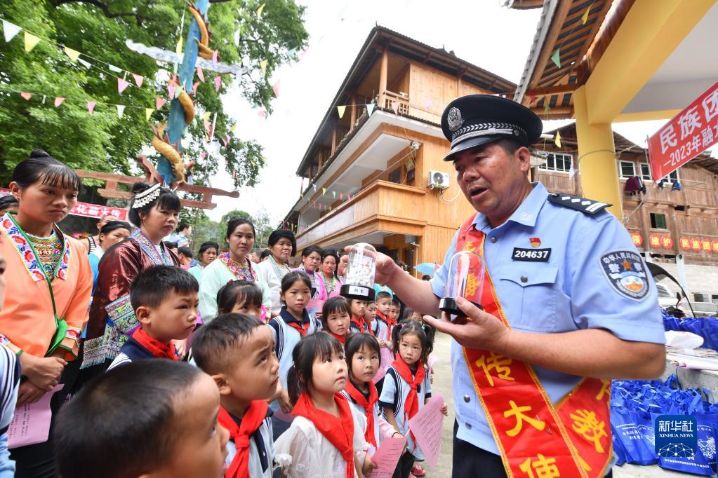 在第36個(gè)國際禁毒日來(lái)臨之際,廣西柳州市融水苗族自治縣桿洞鄉烏英苗寨開(kāi)展禁毒知識進(jìn)苗寨宣傳教育活動(dòng),通過(guò)講解禁毒知識、鑒別毒品樣品、發(fā)放宣傳資料等方式,幫助村民提高識別毒品能力,增強禁毒意識。