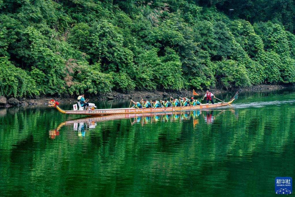 當日,浙江省建德市乾潭鎮舉辦胥溪清涼季鄉村傳統龍舟賽,迎接端午節。近年來(lái),乾潭鎮充分挖掘自然山水的優(yōu)勢,將體育旅游、生態(tài)旅游、鄉村度假有效結合,積極推進(jìn)鄉村旅游和鄉村振興。