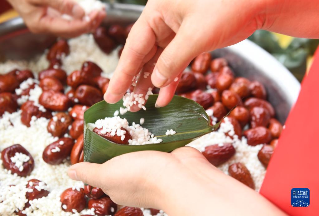 宋人歐陽(yáng)修的《漁家傲》描繪出端午佳節的熱鬧景象,“五色新絲纏角粽”,包粽子是我國重要的端午習俗。人們包粽子、迎佳節,神州處處飄粽香。