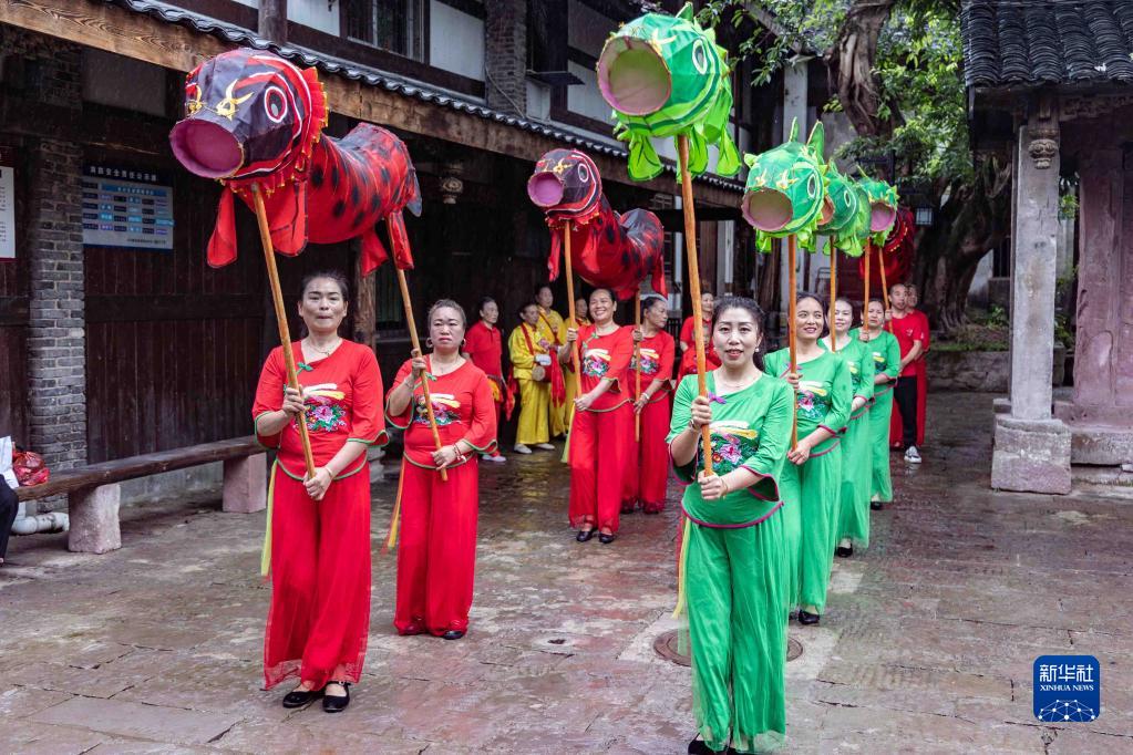 在端午來(lái)臨之際,重慶市永川區板橋鎮的村民開(kāi)展“我們的節日·端午”主題活動(dòng),通過(guò)包粽子、制作香囊、舞泥鰍燈、打腰鼓等傳統民俗活動(dòng)迎接佳節。