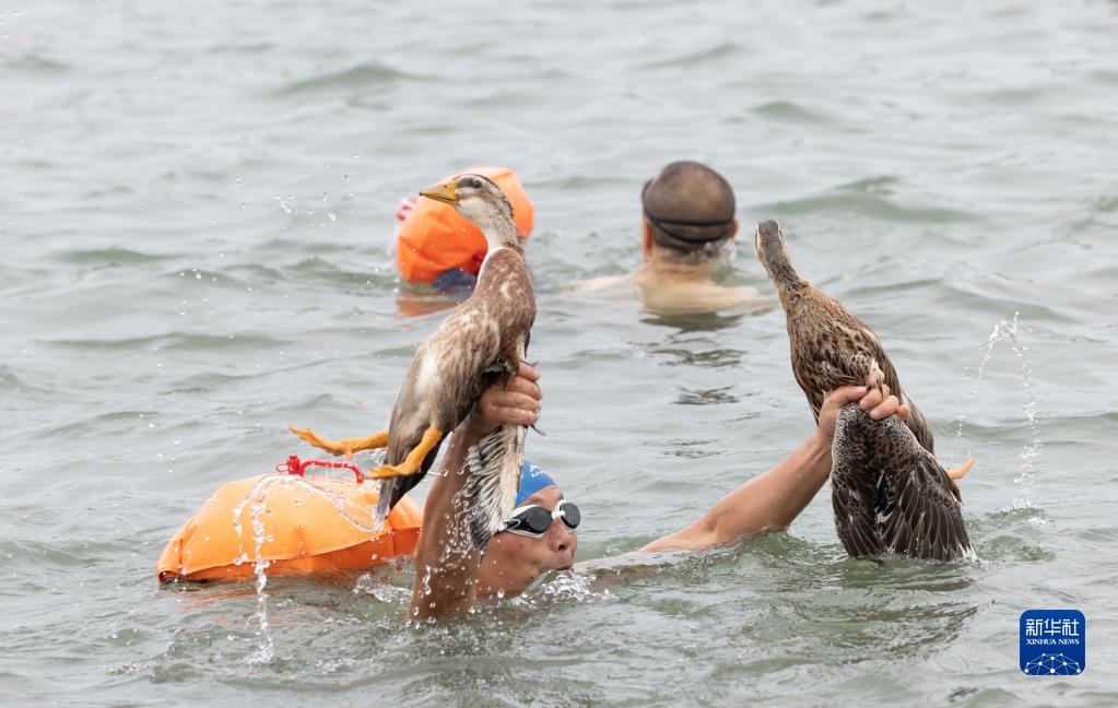 6月21日,四川省樂(lè )山市夾江縣群眾下河參與搶鴨子比賽。