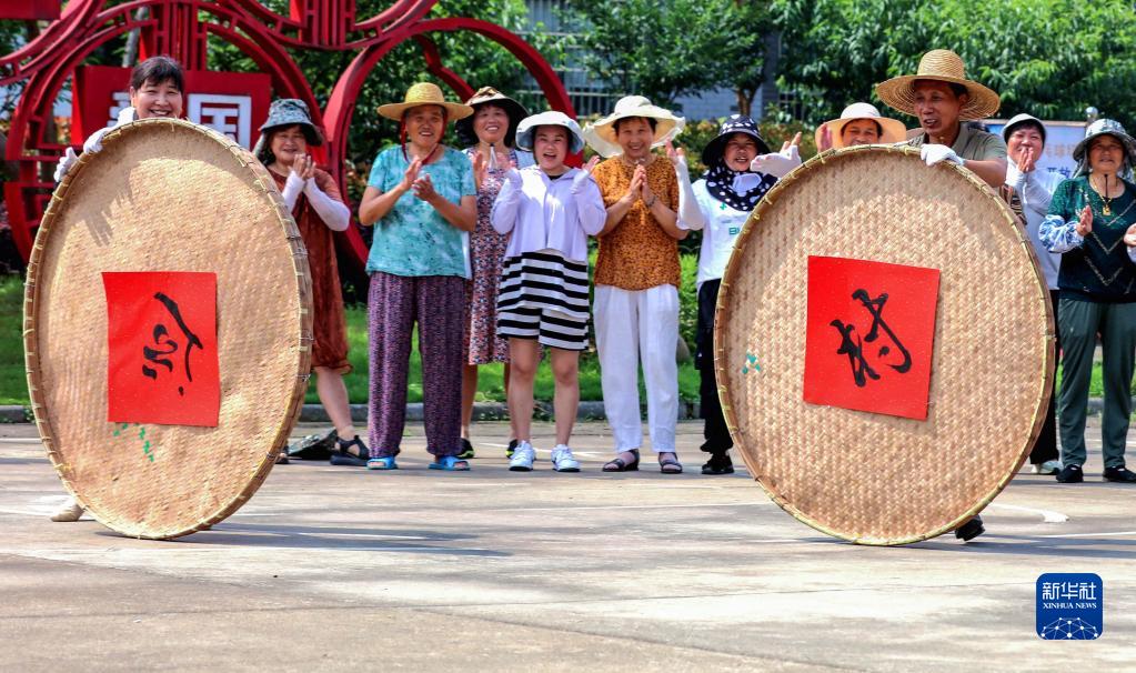 6月21日,在湖州市長(cháng)興縣和平鎮長(cháng)崗村,村民在進(jìn)行滾圓匾比賽。