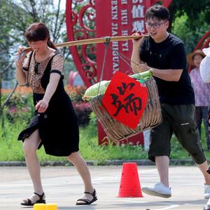 當日,浙江省湖州市長(cháng)興縣和平鎮長(cháng)崗村開(kāi)展“迎端午”農民趣味運動(dòng)會(huì ),進(jìn)行瓶口插秧、挑擔子、獨輪車(chē)運蔬菜等項目,以此方式迎接端午節。