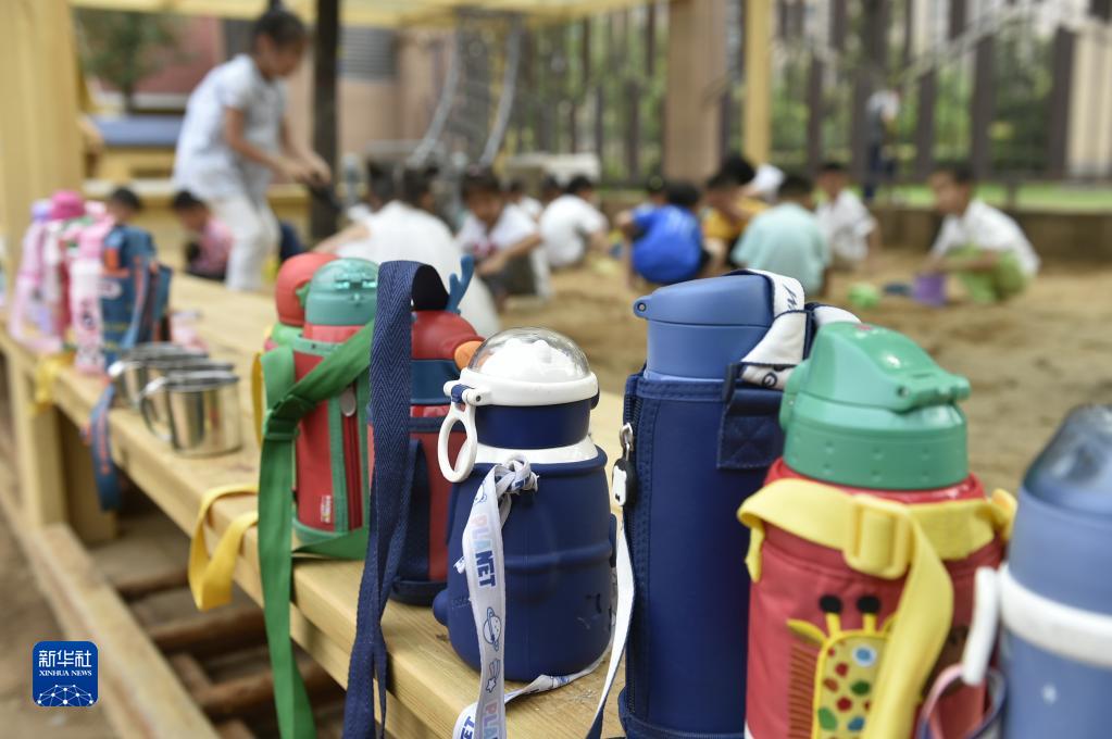 6月19日,在河南省鄭州市奇色花福利幼兒園,普通兒童和特殊需要兒童一起參加戶(hù)外活動(dòng)。