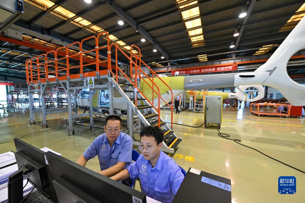 工作人員在航空工業(yè)天津直升機有限責任公司查看產(chǎn)品圖紙(6月20日攝)。
