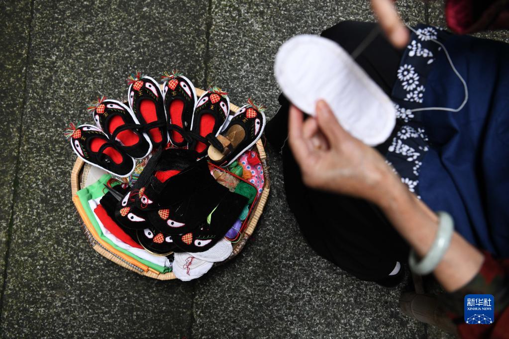 安徽省黃山市歙縣許村是一座有著(zhù)上千年歷史的古村落。每年端午節,父母、長(cháng)輩給孩子們送虎頭鞋、香囊掛件等是許村世代相傳的習俗。如今,許村仍有不少村民堅持手工縫制虎頭鞋、編制香囊掛件,這些“守藝人”希望能留住鄉村的文化底色,讓更多人了解、學(xué)習傳統技藝。