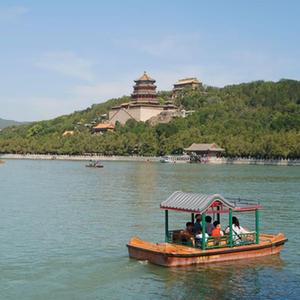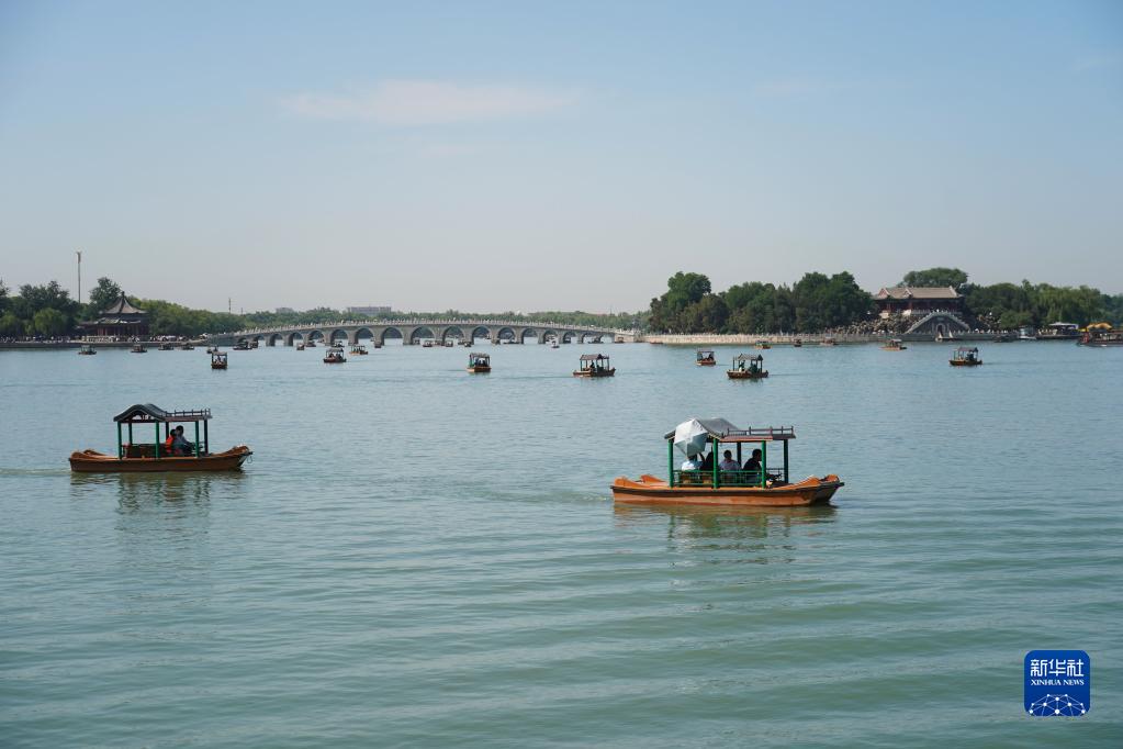 6月22日,游人在北京頤和園乘坐游船。