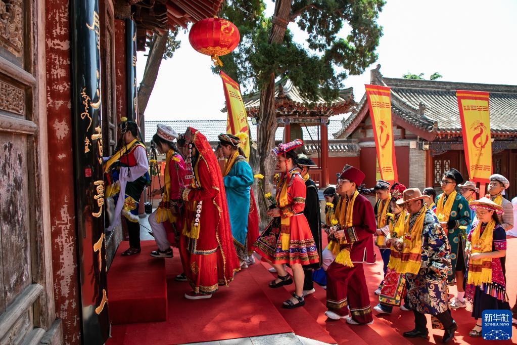 6月22日,各界人士代表參加完公祭伏羲大典后進(jìn)入伏羲廟先天殿獻花。