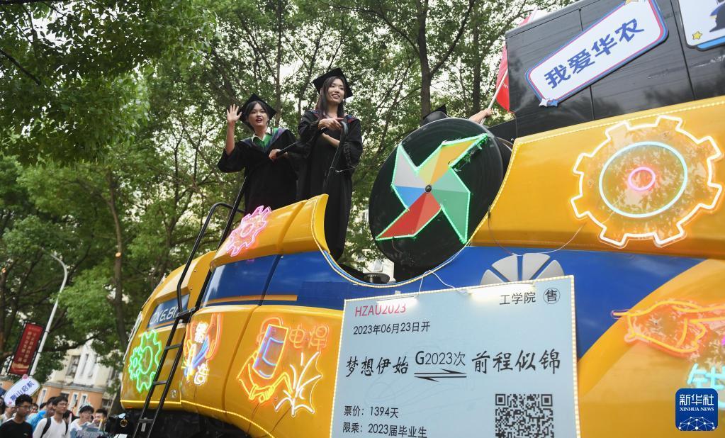 當日,為迎接畢業(yè)季,華中農業(yè)大學(xué)舉行了一場(chǎng)花車(chē)巡游,學(xué)生們簇擁著(zhù)由現代農機裝備組成的花車(chē)隊伍,在校園里巡游,慶祝畢業(yè)、致敬青春。