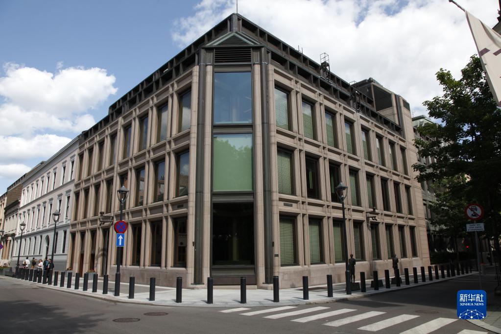 這是6月22日在挪威首都奧斯陸拍攝的挪威央行。