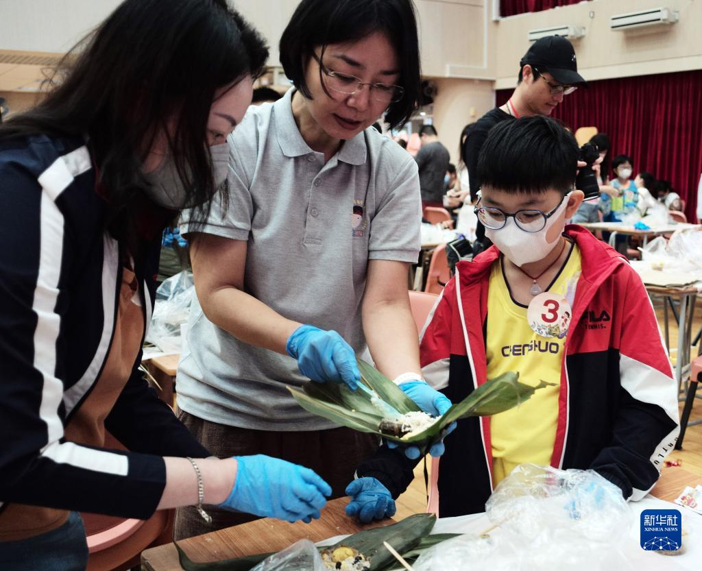 在香港漢華中學(xué),人們親手制作粽子,共慶端午(6月18日攝)。新華社記者 李鋼 攝