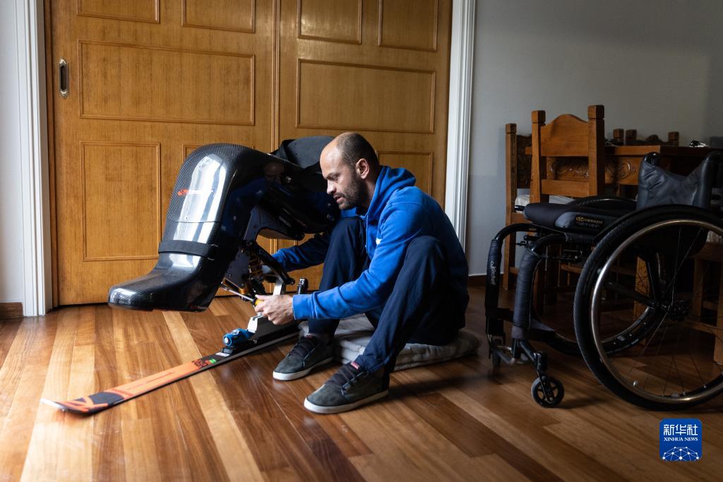 3月7日,喬治·斯法爾托斯在希臘雅典的家中安裝獲贈的定制坐姿滑雪器。