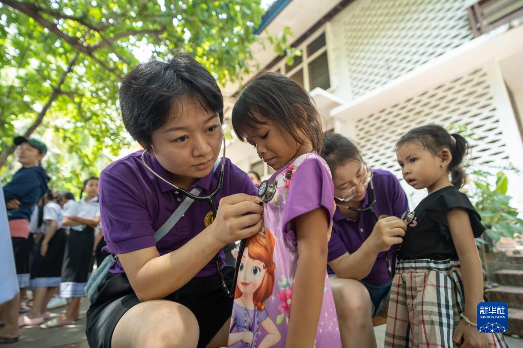 6月17日,在老撾北部瑯勃拉邦,中國醫療組對當地兒童進(jìn)行先心病免費篩查。