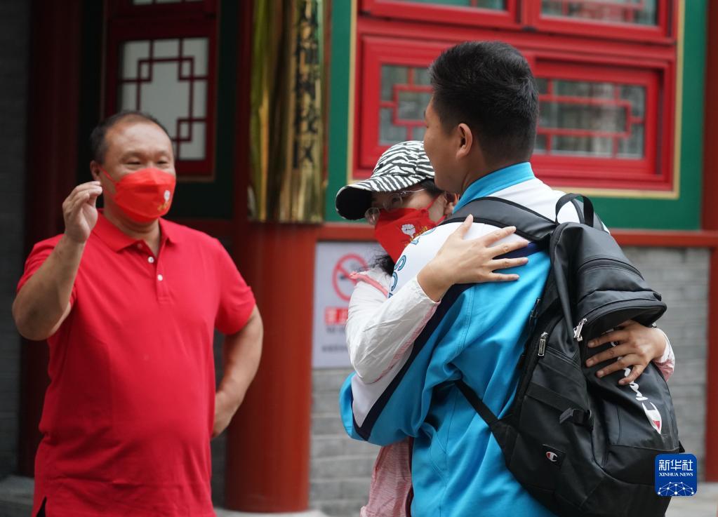 6月24日,在北京一零一中雙榆樹(shù)校區考點(diǎn)外,老師鼓勵即將進(jìn)入考場(chǎng)的學(xué)生。