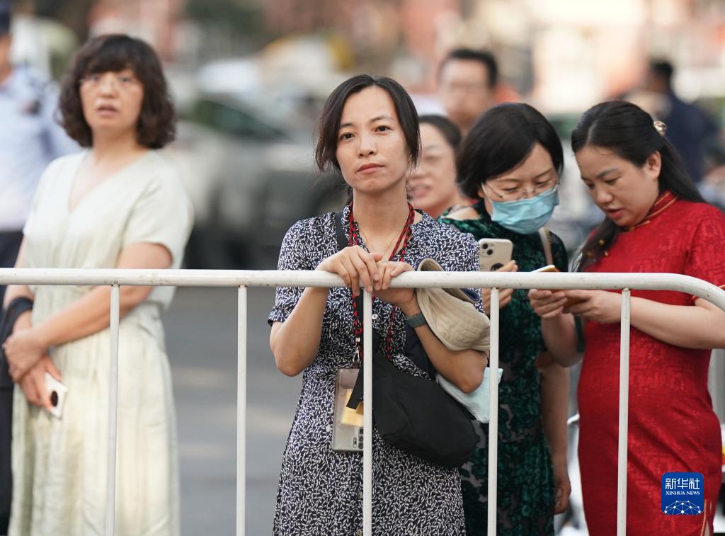 6月24日,考生家長(cháng)目送考生走進(jìn)北京一零一中雙榆樹(shù)校區考點(diǎn)。