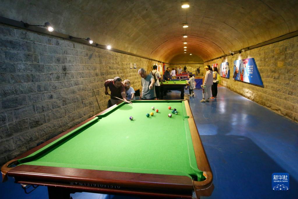 6月24日,市民在濟南市佛慧山人防工程納涼點(diǎn)打臺球。