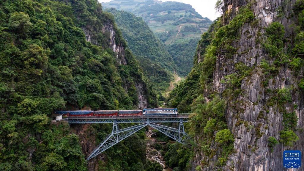 滇越鐵路是云南省第一條鐵路,米軌火車(chē)已在這條鐵路上穿行百余年。在滇越鐵路屏邊縣段,有一座標志性的“人字橋”,在懸崖峭壁間挺立百余年。