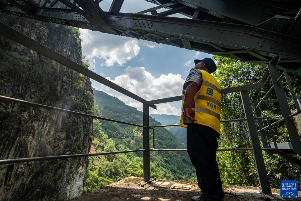 烈日炎炎,皮膚黝黑的守橋人楊有光行走在“人字橋”上,他在此駐守已有30余年?,F在,楊有光和妻子以及另外幾名同事輪班堅守在守橋崗位上,守護著(zhù)過(guò)往火車(chē)的通行安全。