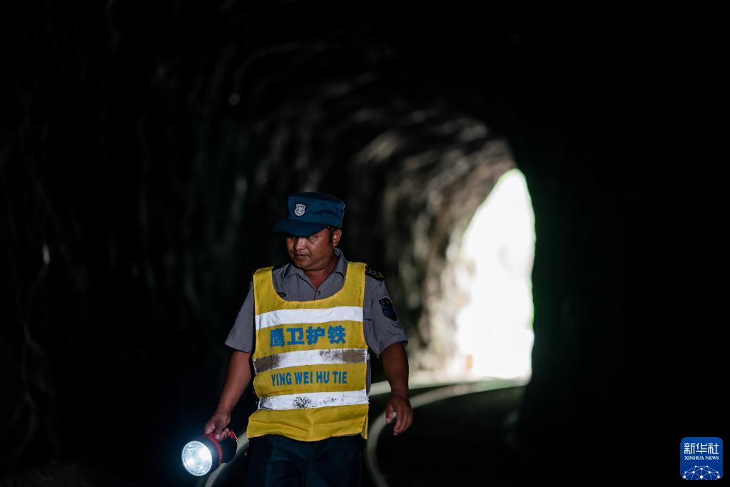 穿上工作服,拿著(zhù)手電筒,穿行在隧道和橋梁間,這是楊有光再熟悉不過(guò)的工作內容?;疖?chē)駛經(jīng)“人字橋”前后,須從兩個(gè)隧道穿過(guò)。為保障行車(chē)安全,楊有光不僅要檢查橋面狀況,還需要精準把握隧道內的情況。他要穿行在隧道內外,巡查大橋整體狀況,沿著(zhù)陡峭的階梯走到橋下,察看零部件狀況?;疖?chē)駛來(lái)時(shí),楊有光站在自己約3平米的值班室門(mén)口跨立候車(chē),目視火車(chē)駛過(guò)“人字橋”,并將通過(guò)時(shí)間記錄下來(lái)。