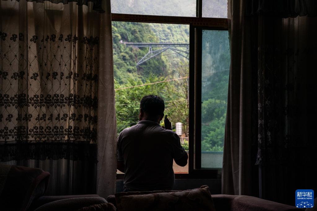 6月21日,楊有光在山下的家里打電話(huà),不遠處就是“人字橋”。