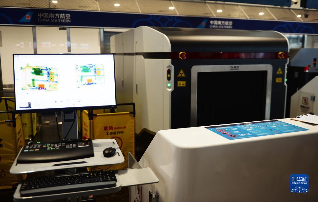 這是6月25日在美蘭國際機場(chǎng)拍攝的已安裝完畢的國內航班申報柜臺托運物品查驗設備。