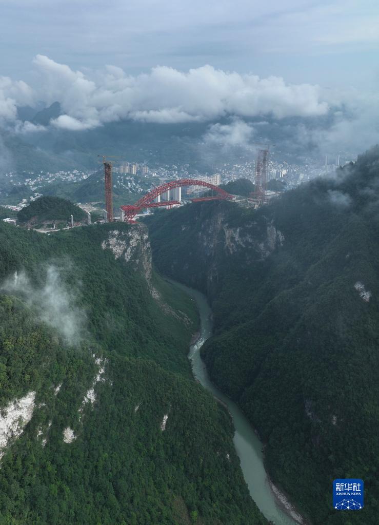 這是6月25日拍攝的建設中的溇水河特大橋(無(wú)人機照片)。