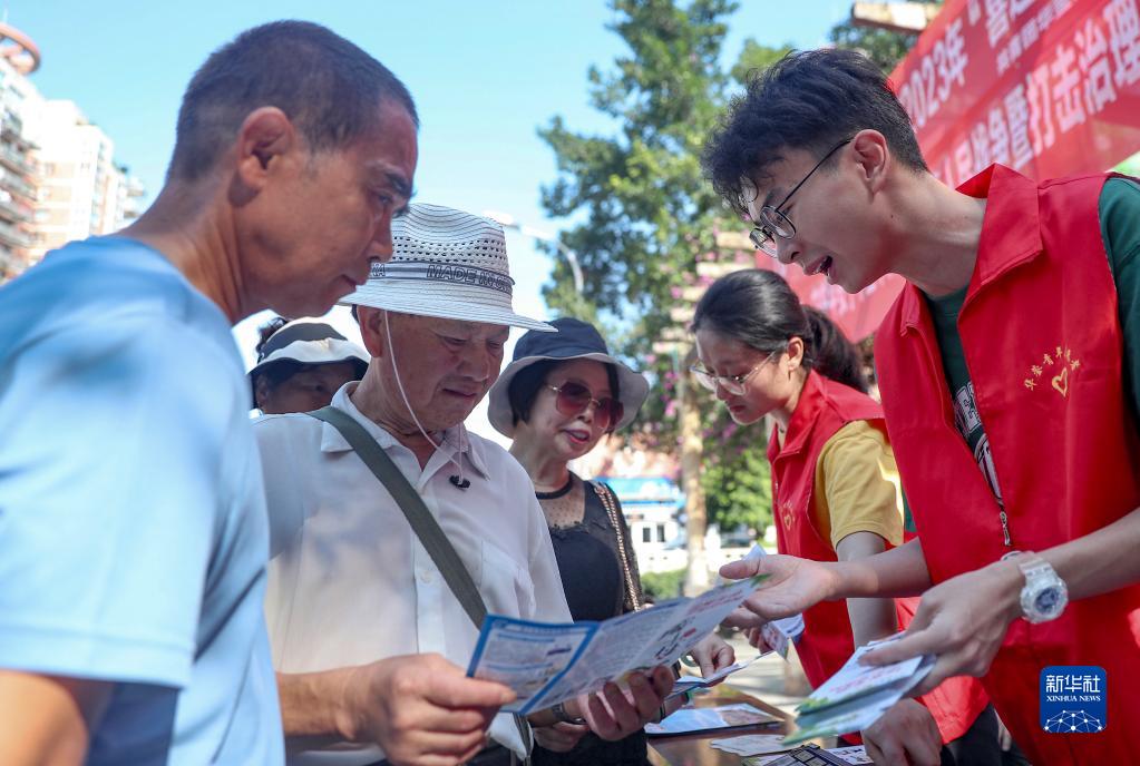 6月25日, 四川省華鎣市青年志愿者向市民宣傳禁毒等知識。